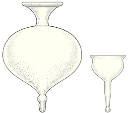 The 4th century A.D. cone lamp evolved from its domestic role to its ecclesiastical one in many ways, so that by the 6th century A.D. some of the new kinds had long stems, others had short ones; some had wide-open mouths, other had narrow ones. In some bowl-shaped lamps a central glass tube was added that would hold the wick steady and erect, ensuring constancy of the flame. Many other early Byzantine lamps were adaptations of domestic jars, with a few loops added to their neck rim so that, if need be, they could be suspended individually.