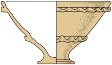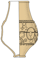 Illustrated here are two kinds of pottery beakers that were particularly popular in the northwestern provinces in their day, though an appreciable number of other methods of decoration, such as red slip-coating, barbotine work, molded-relief and mica-dusting, were introduced over the centuries before the collapse of the Western Empire at the end of the 4th century A.D.