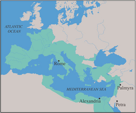 In one of the most notorious events of history, Julius Casar was murdered on the Ides of March in 44 B.C. A predictable political confusion ensued, but thirteen years and three civil wars later, Octavian-Caesar's adopted son and heir-was Rome's sole and undisputed ruler. His naval victory at Actium in 31 B.C., which had spurred the suicide of Anthony and Cleopatra, gave him Egypt. Thus Rome had complete control of the grain trade throughout the Mediterranean and, as importantly, unrestricted access to the traffic of oriental materials flowing into Alexandria via the Red Sea and the nearby Arabian peninsula.