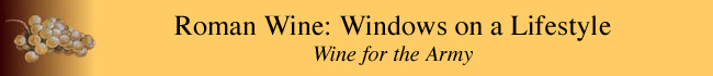 The provisioning of the Roman army with wine is a special story. In part, it is one of appreciable consumption. If soldiers drank at least as much wine as the citizens of Rome—about 100 gallons per year—then a 5000-man legion on provincial duty will have gulped down about half a million gallons every year, perhaps far more. In part, the story also is one of fascinating instances of political expediency. Thus, the emperor Claudius, despite the stutteringly incompetant image that the modern historian Robert Graves presented of him in I Claudius, wisely pandered to his forces in Britain, by passing on to them a tribute of fine wine extracted from the Rhodians of the Aegean.