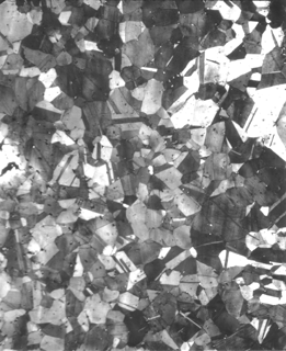 The microstructure consists of polyhedral grains that, in their twinning and slight distortion, are indicative of an annealing treatment after moderate cold-working. Inclusions are small and scattered very lightly throughout the metal without any particular orientation.