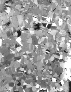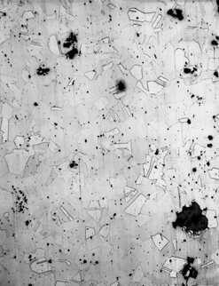 Etchant: for micrograph on left, Klemm’s III; for micrograph on right, Ammonium hydroxide + hydrogen peroxide
