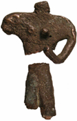 Like the arsenic, the lead in all the Hissar copper-based artifacts in this study (with the exception of the Human figurine illustrated here) most likely derives from the original copper ore. Thus, the Pb-content’s general variation, from near-trace levels to around 3.0%, simply reflects differences in the conditions of smelting of that ore (Tylecote 1977).