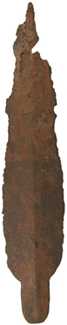 The MMP analytical program has identified only two Hissar copper-based artifacts with a significant nickel content (Ni, >0.5%), both of them from the site’s Phase I: the Blade (inv. 33-15-086) illustrated here, and the Awl (inv. 33-15-079). In fact, 69 out of the 97 (i.e., 71%) copper-based artifacts studied had a nickel content of less than a tenth of that level (i.e., < 0.05%).