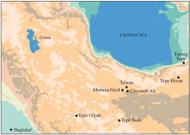 Map of the region south and west of the Caspian Sea, including not only Tepe Hissar itself,
